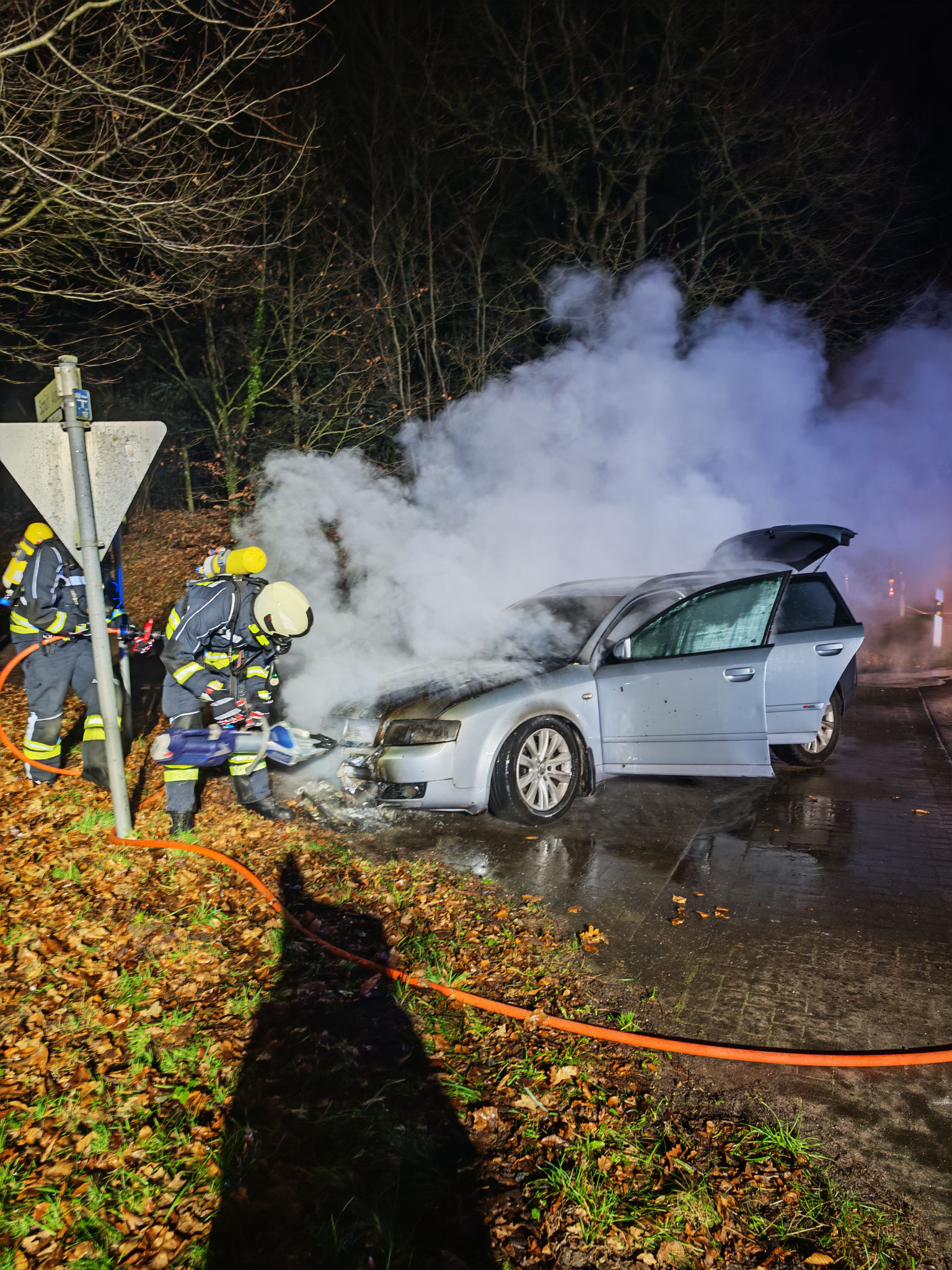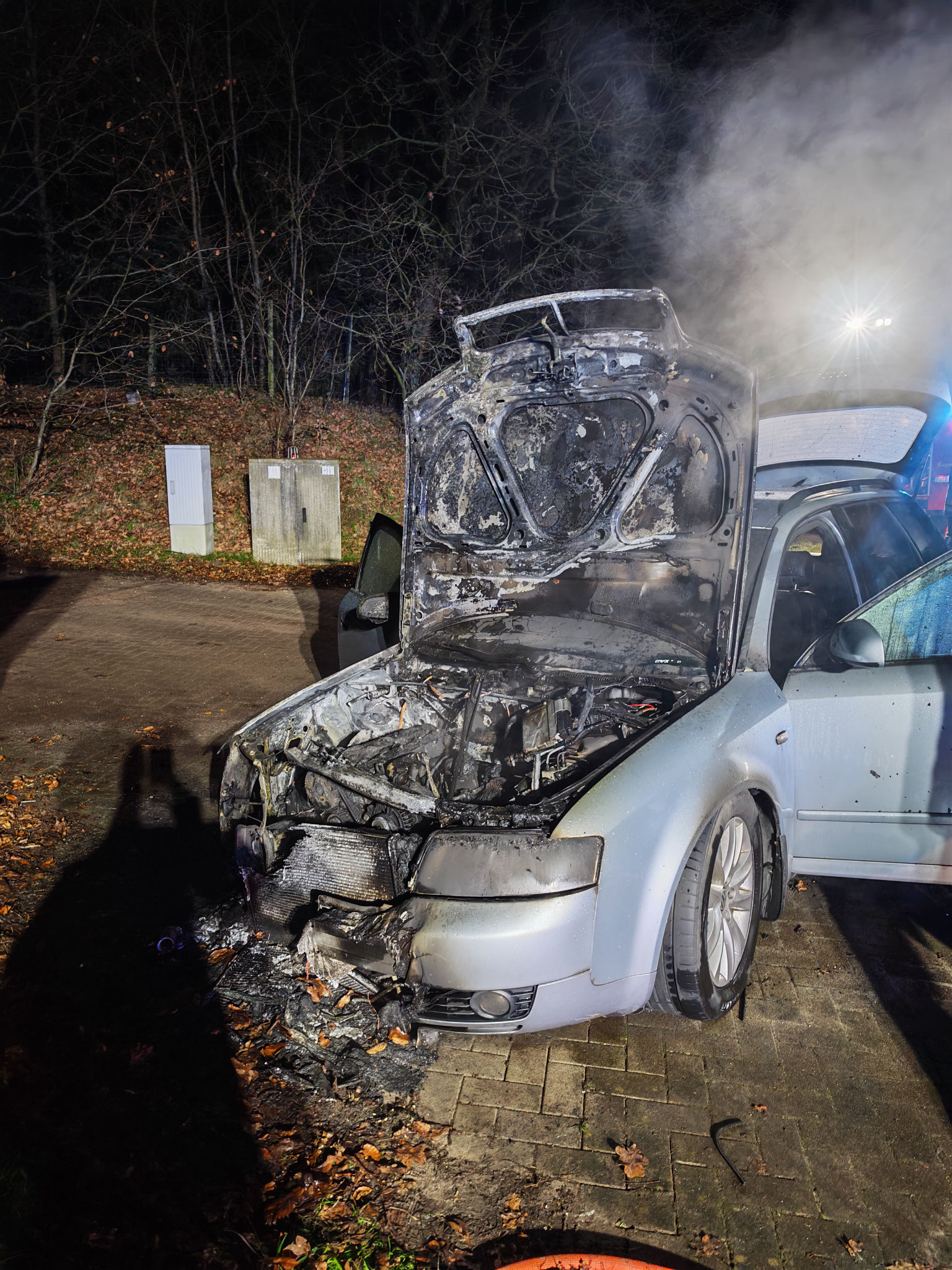 Ein PKW hat im Motorraum Feuer gefangen. Wir konnten das Feuer zügig unter Kontrolle bringen und ein weiteres ausbreiten auf den Innenraum zum größten Teil verhindern. Ein Trupp unter Atemschutz hat sich zugang zum Motorraum mittels Spreizer verschafft und die letzten Glutnester abgelöscht.