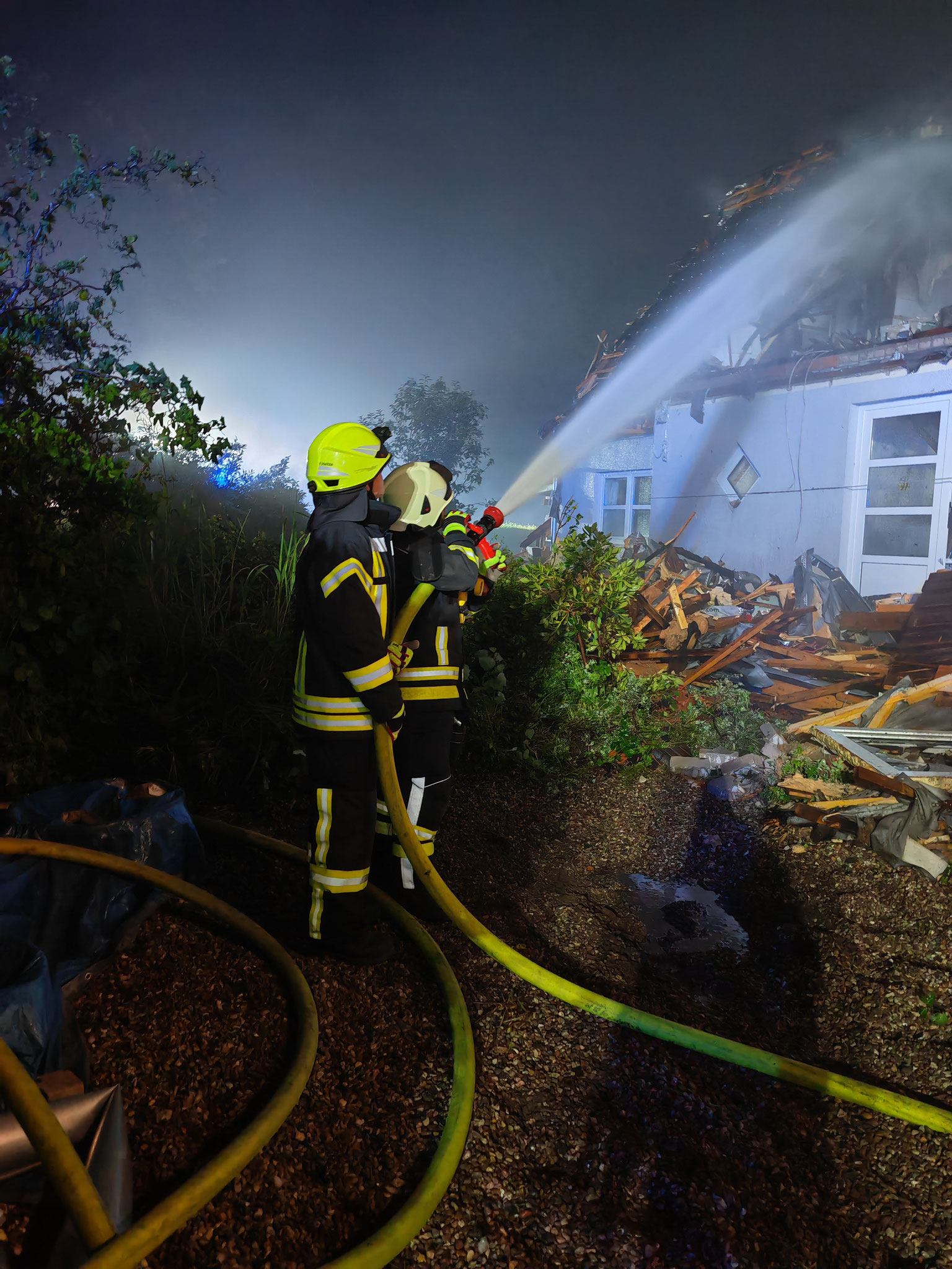Wir wurden gegen 1 Uhr zum ablösen der bereits seit dem Votag ca. 19 Uhr im Einsatz befindlichen Kameraden alarmiert. Wir übernahmen die restlichen Ablöscharbeiten und löschten die Schutteile ab die vom Bagger abgerissen wurden. Gegen 5 Uhr morgens war der Einsatz dann auch für uns beendet.