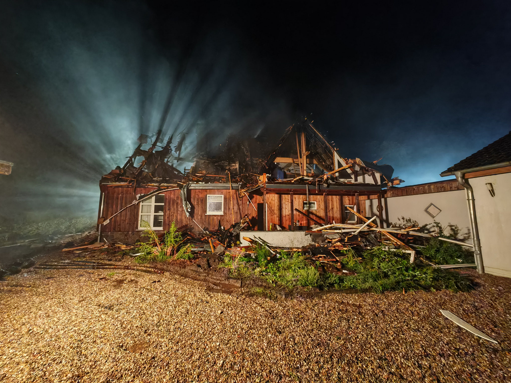 Durch einen Blitzeinschlag geriet der Dachstuhl eines Hauses in Brand.