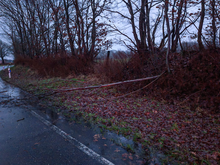 Ein kleiner Baum ist auf die Straße gestürzt, mit 2 Kameraden konnten wir den Baum zur Seite tragen und die Fahrbahn reinigen.