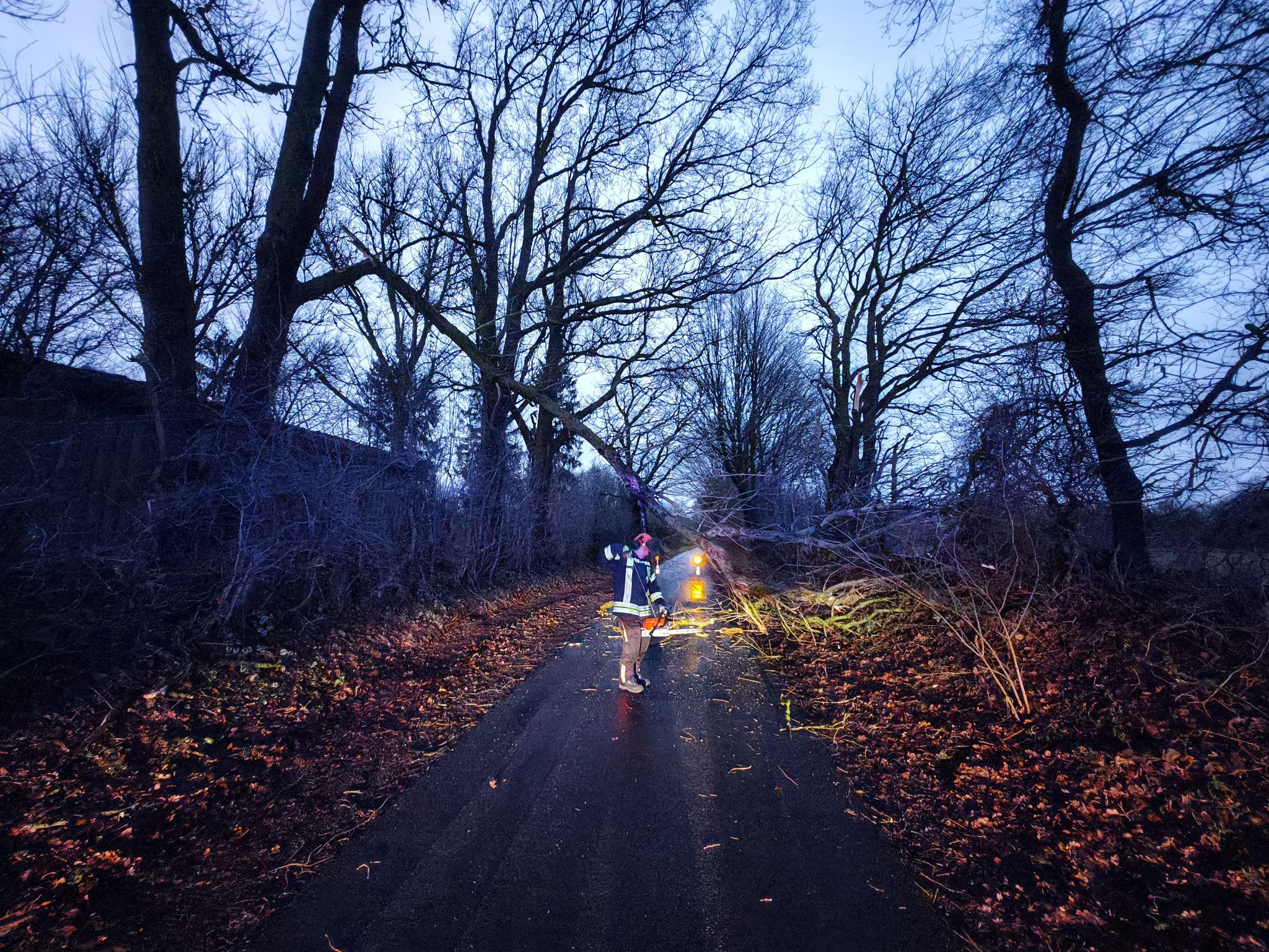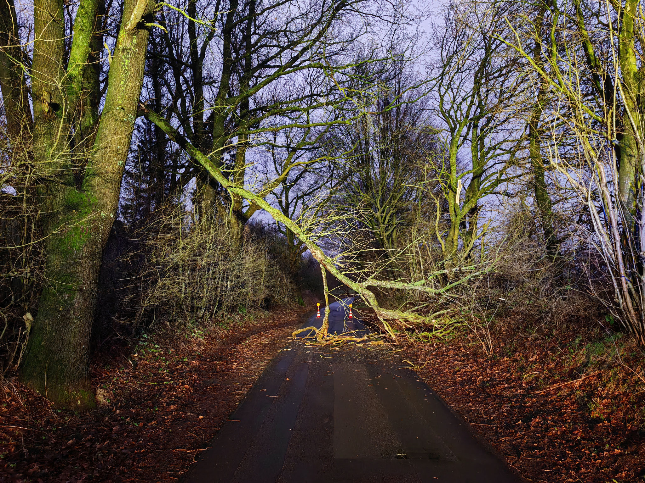 Ein abgebrochener Ast blockierte die Fahrbahn.