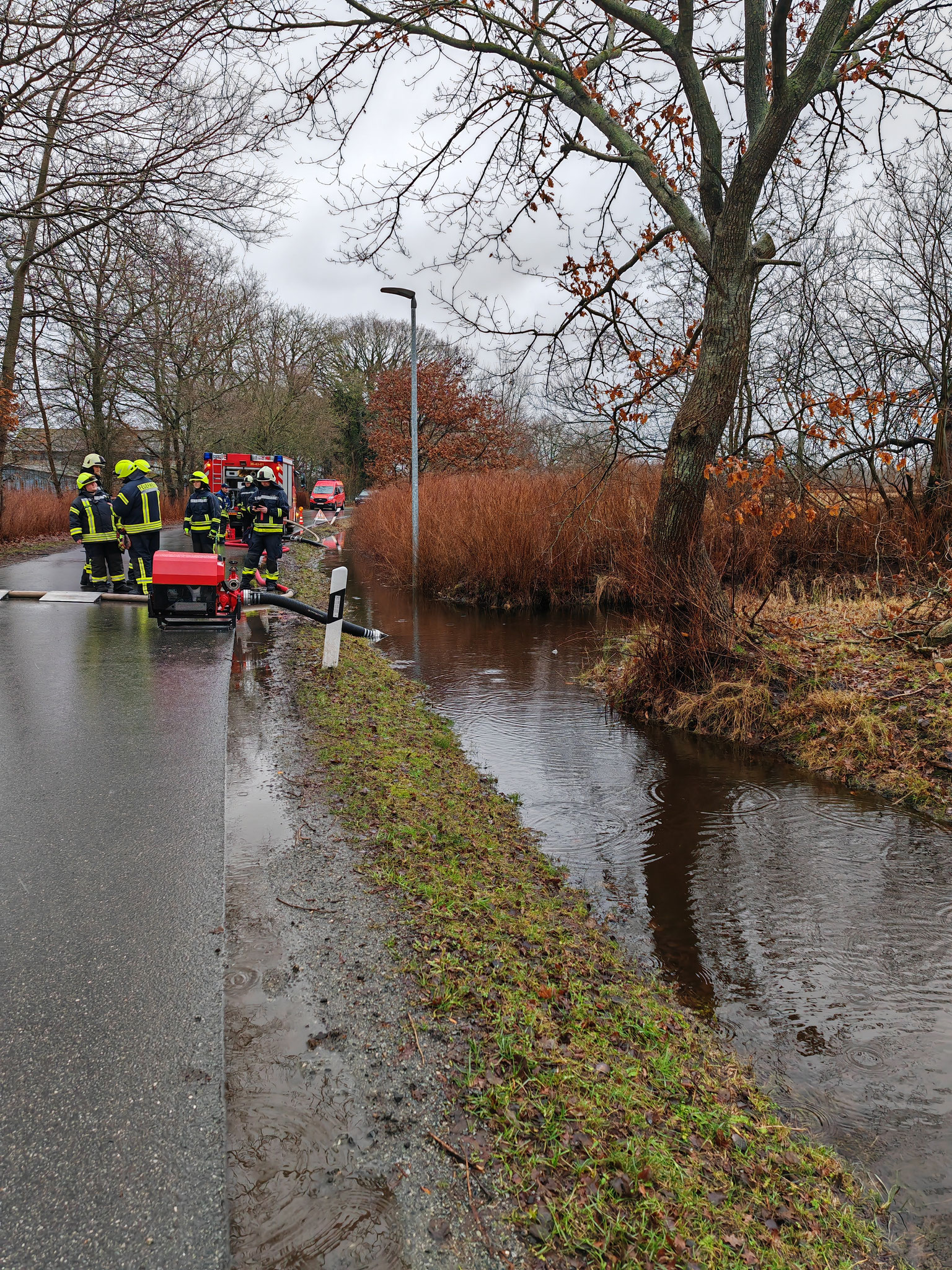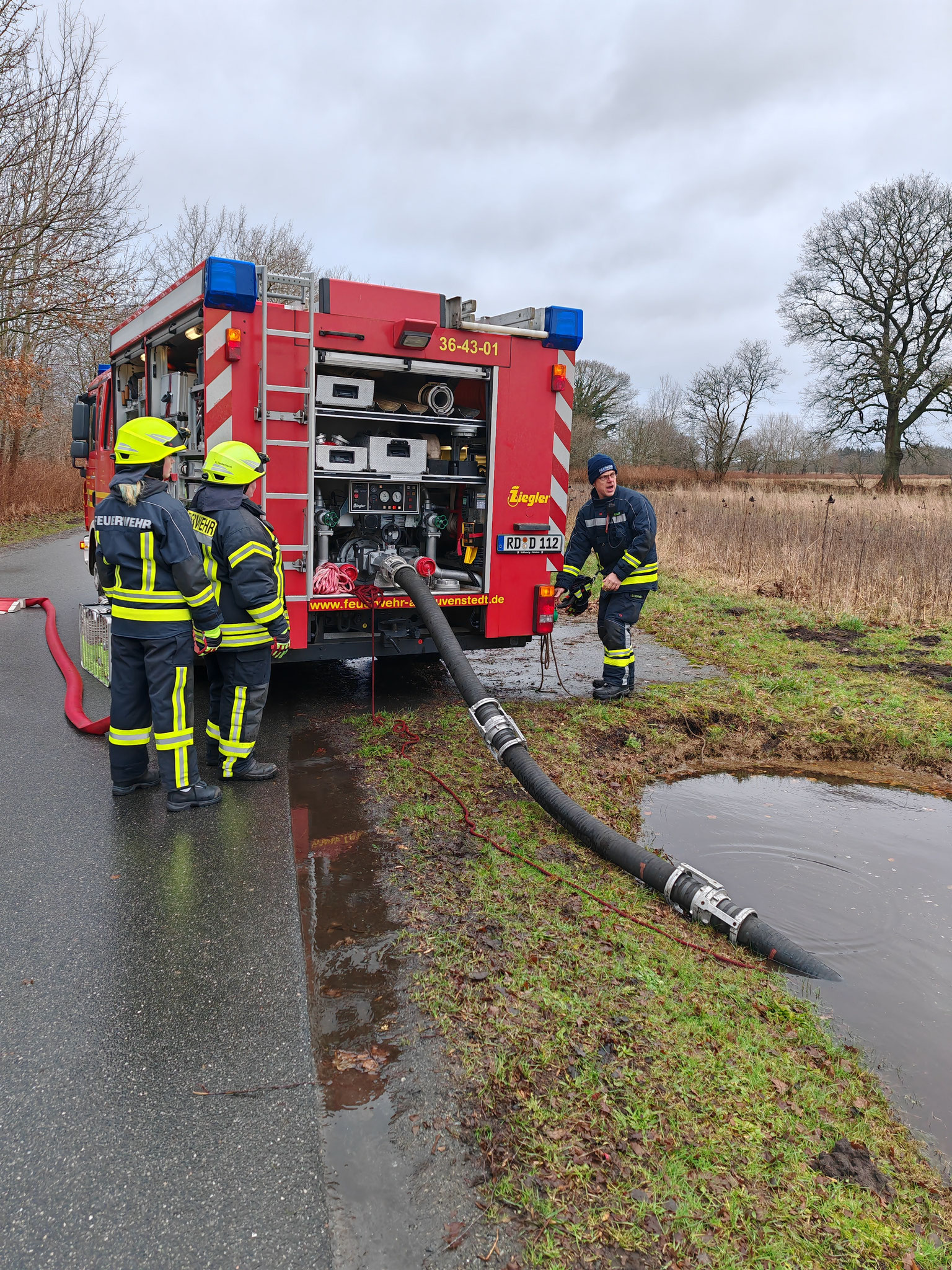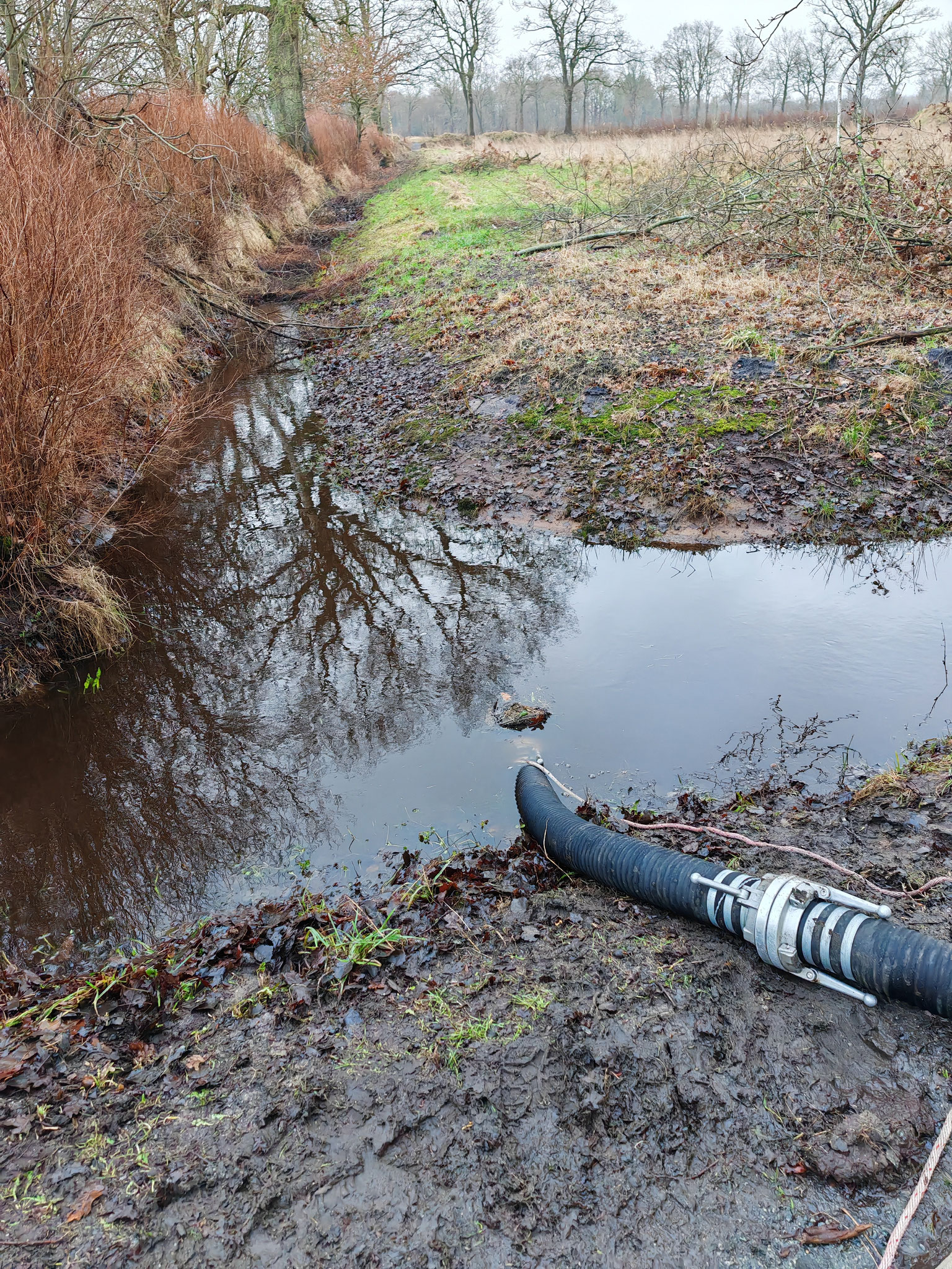 Die Kläranlange drohte wieder voll zu laufen, wie bereits bei den Einsätzen davor pumpten wir die Gräben erneut leer und führten das Wasser auf einer Freifläche ab.
