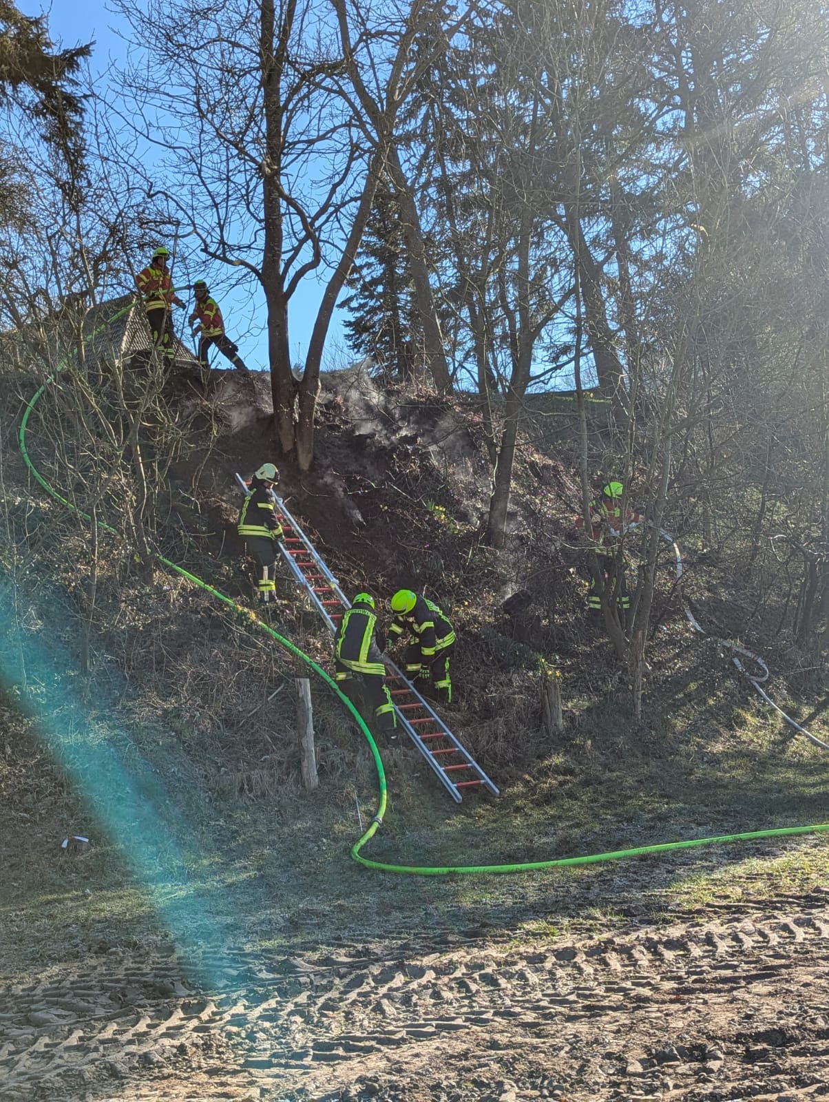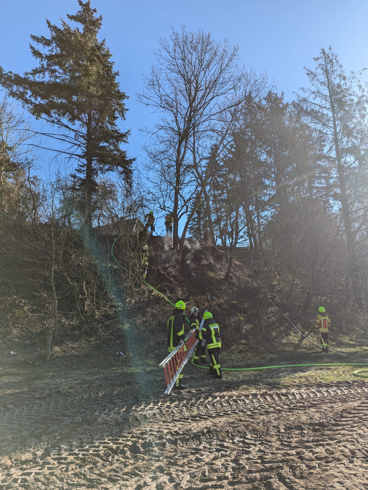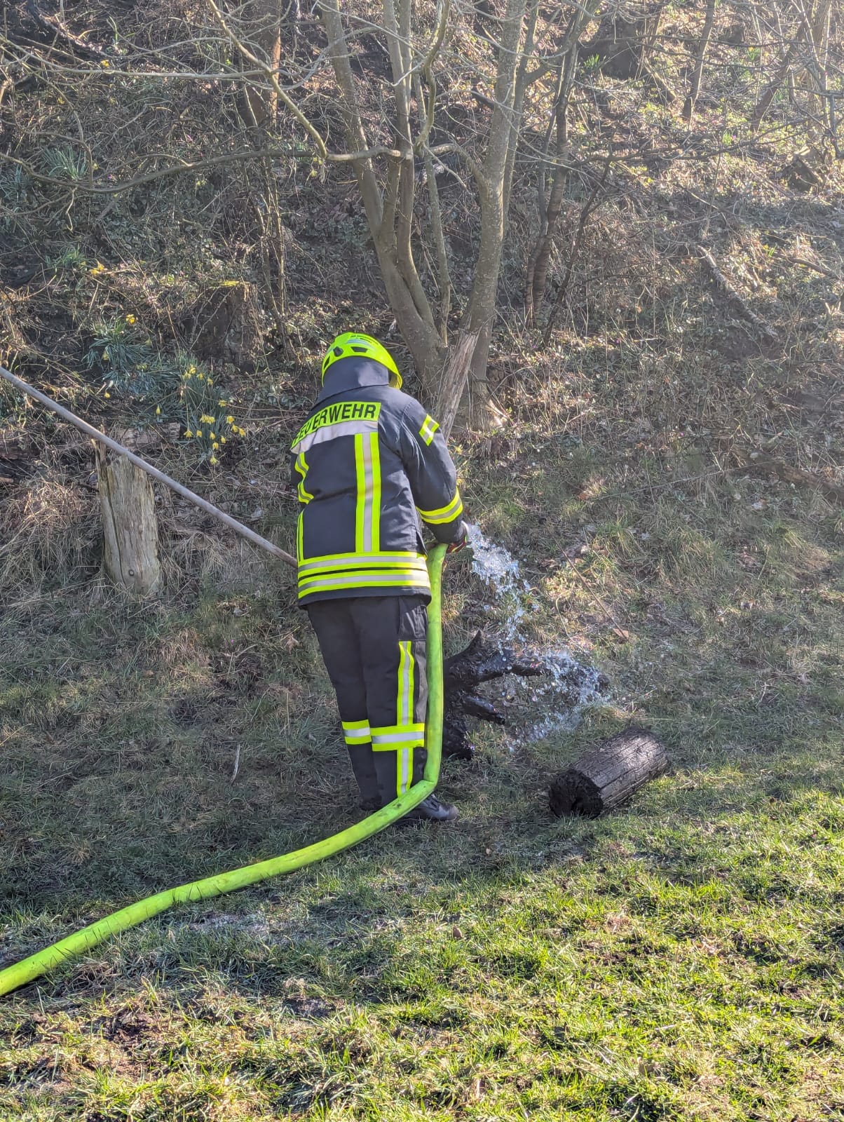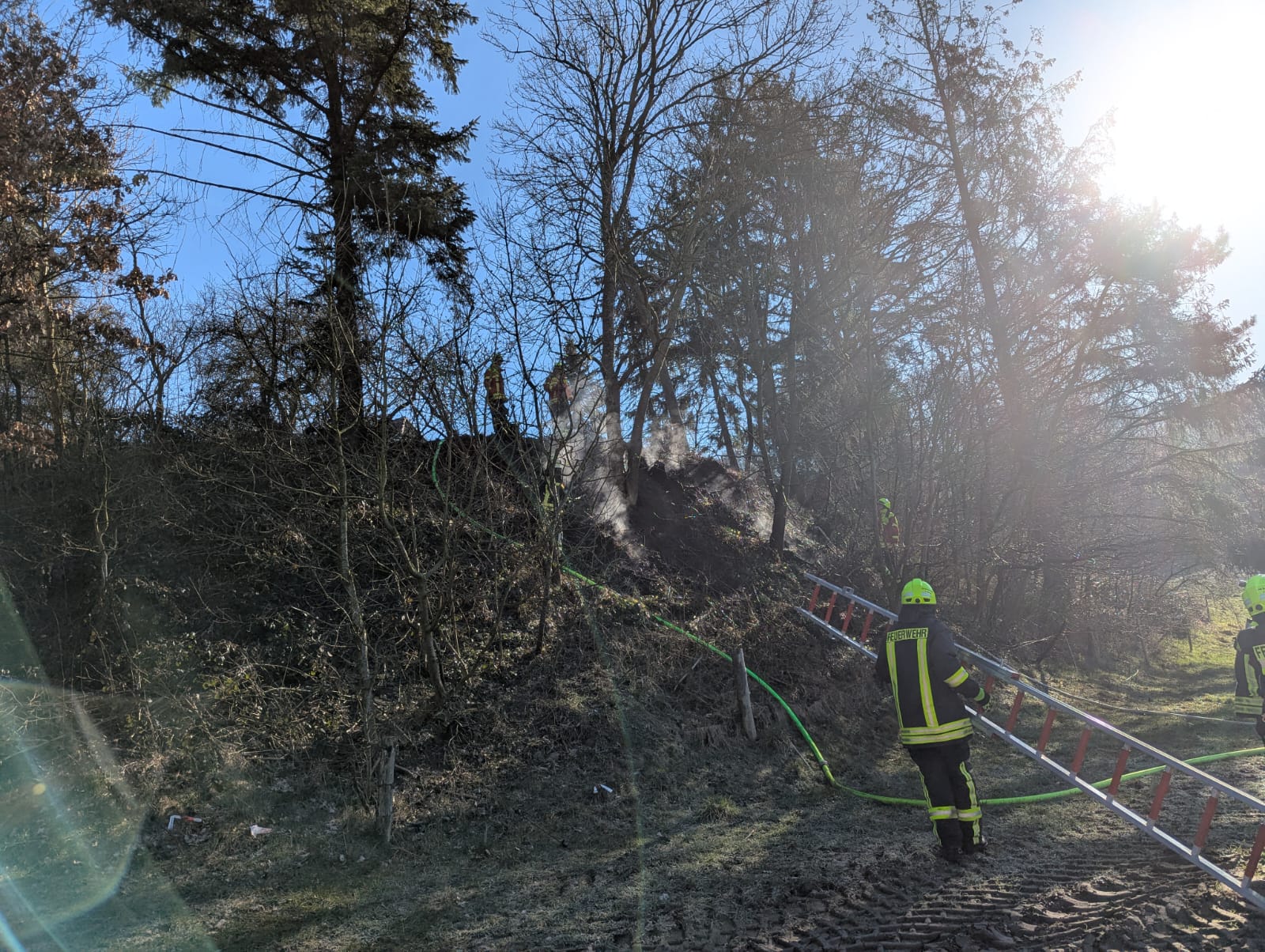 Beim eintreffen Stand ein Stück Knick in Flammen, durch schnelles eingreifen und die Zusammenarbeit der Wehren konnte das Feuer schnell gelöscht und eine weitere Ausbreitung verhindert werden.